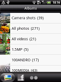 At the bottom of the main album there are three virtual buttons - one for the actual folder list, another for Facebook and the final one for Flickr. The latter two display images from either account or those posted by your friends.
